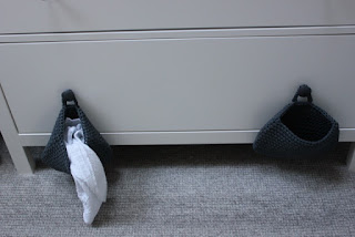 An die untere Schublade habe ich die zwei kleineren Körbe zum Spielen aufgehängt.